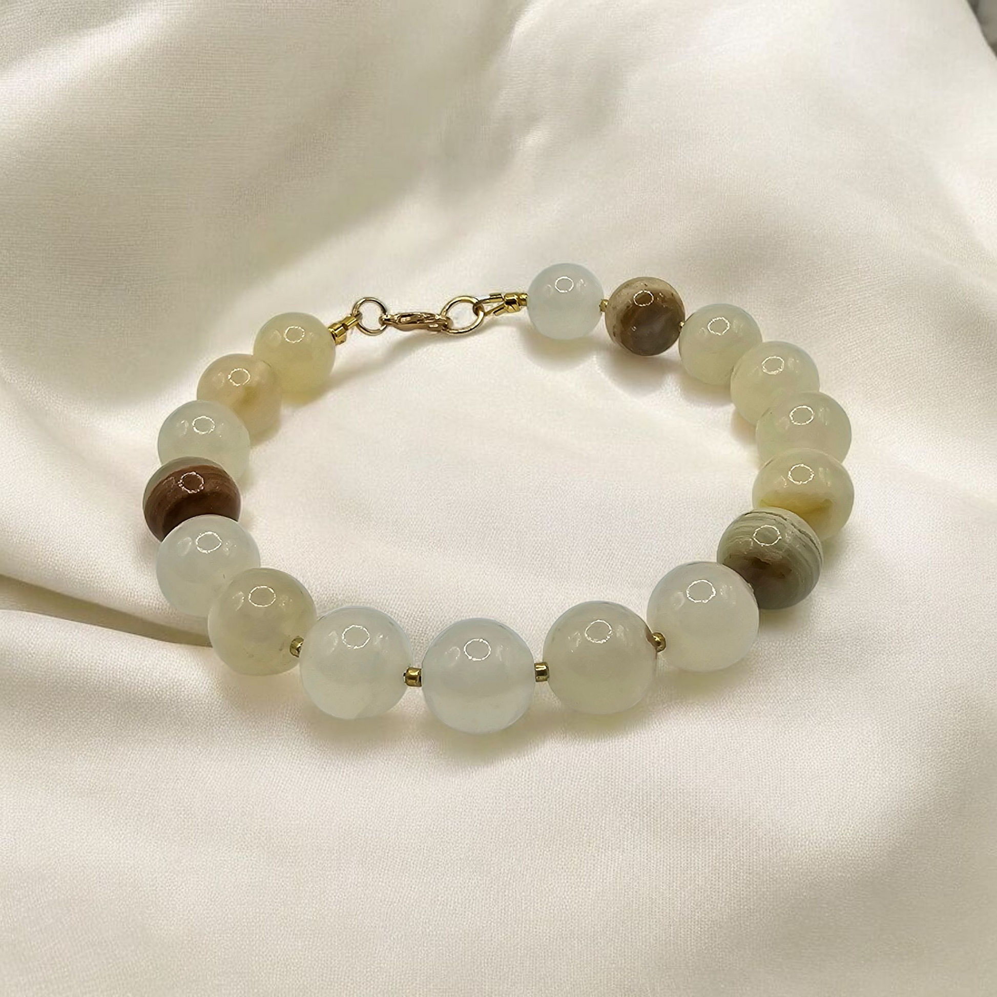 Delicately accented with gold seed beads and finished with a strong stainless steel clasp, this piece blends earthy beauty with subtle elegance. Hand-strung on durable tiger tail wire, it’s made to accompany you through every season.